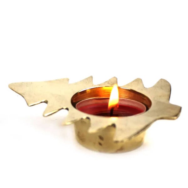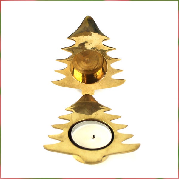 - Een vintage messing kandelaar in de vorm van een kerstboom