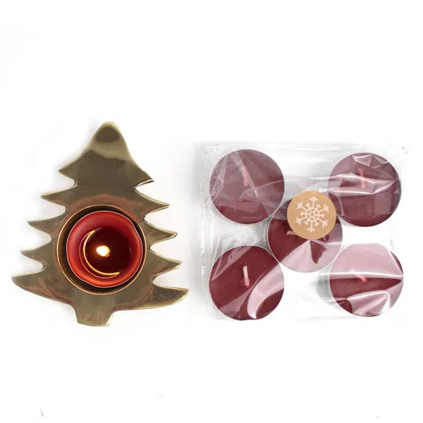 Messing kerstboom kandelaar met 5 winter theelichtjes