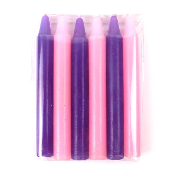 - Drie roze en drie paarse kerstboomkaarsen