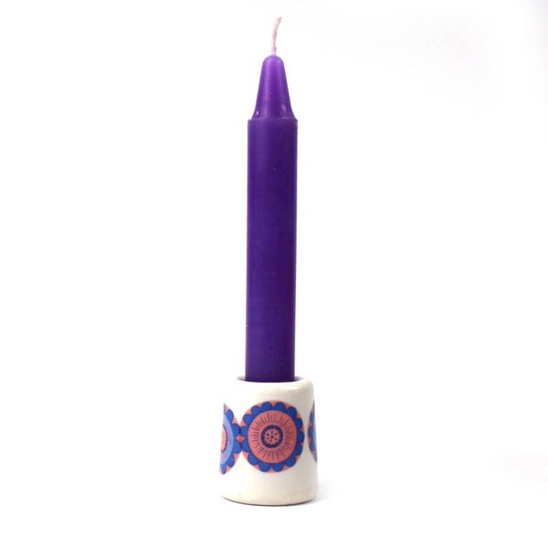 Mini kandelaar porselein roze lila + 6 kaarsen en happy winter kaart in houder