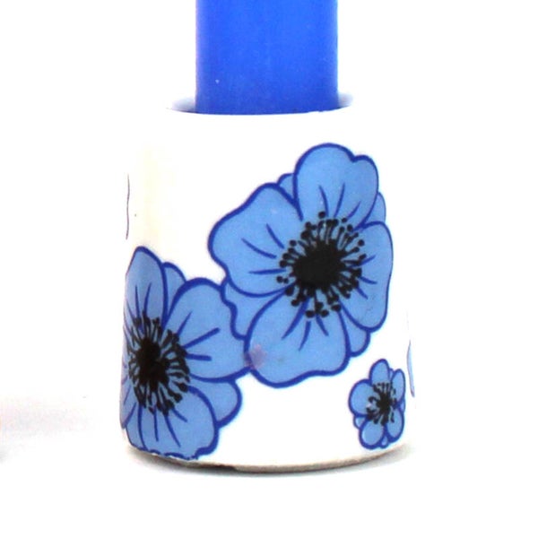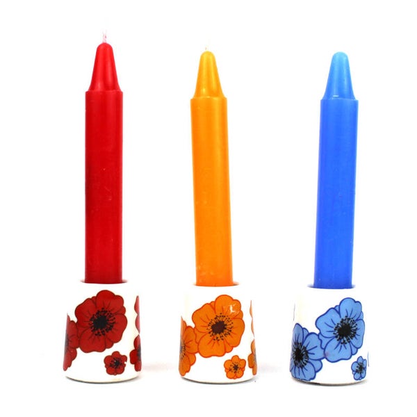 Mini kandelaar set van porselein oranje rood blauw + 9 kaarsen en happy winter in houder